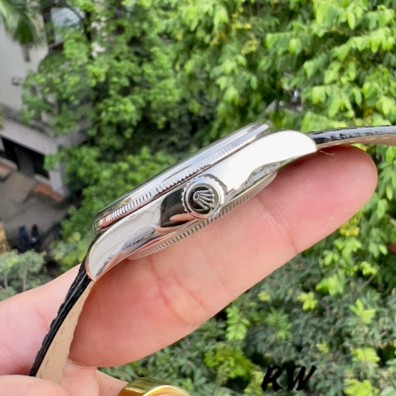 Rolex Cellini Dual Time 50529 Silver Sunburst Dial Black Leather Strap 39mm Mens Watch,39mm white gold case, domed and fluted double bezel, screw down winding crown, domed sapphire crystal, Silver Sunburst Dial with white gold hour markers and hands, Sub-dial at 6 o'clock displaying second time zone and day-night indicator, Shiny black alligator leather strap with white gold buckle.