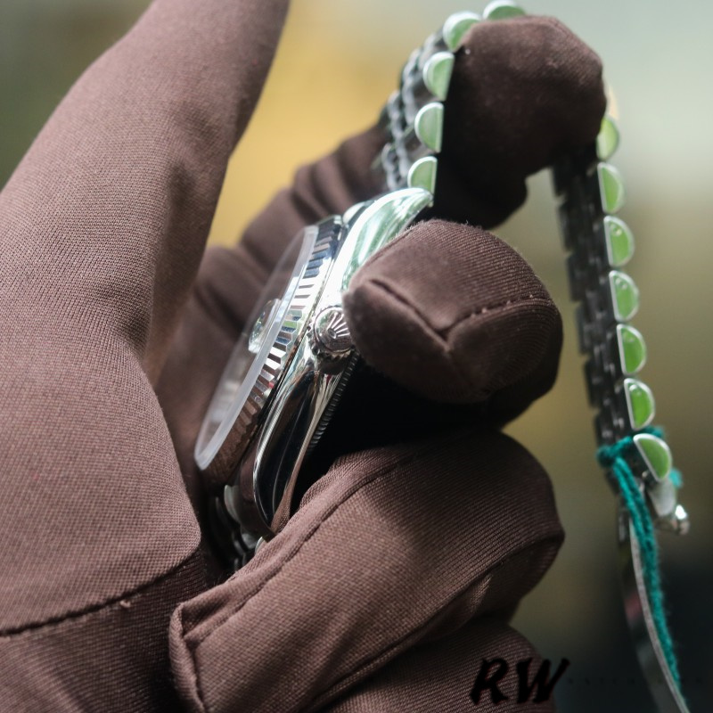 Rolex Datejust 116234-0084 Silver Diamond Dial 36mm Unisex Watch.Its case measures a traditional 36mm.With a round white gold and stainless steel case. A stunning silver dial is adorned with 10 diamond hour markers and a date feature located at the 3 o'clock position displays hours, minutes, seconds, date. And surrounded by a solid white gold fluted bezel.
