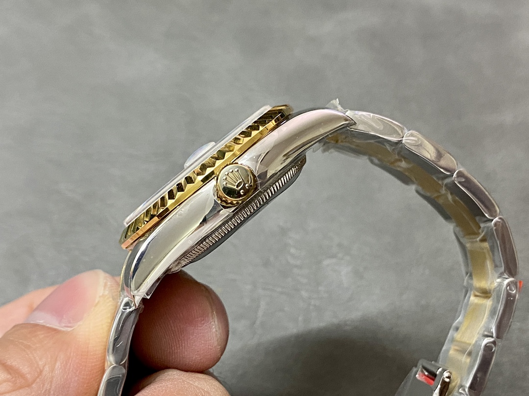 Rolex Datejust 126233 White Index Dial 36MM Unisex Watch, 36mm yellow Rolesor case with Oystersteel monobloc middle case, screw-down steel back, screw-down yellow crown, yellow fluted bezel,White dial with index hour markers. Date displayed under cyclops lens in window at 3 o'clock with instantaneous date and rapid setting.Yellow Rolesor Oyster bracelet with flat three-piece links, folding Oysterclasp buckle with Easylink comfort extension link.