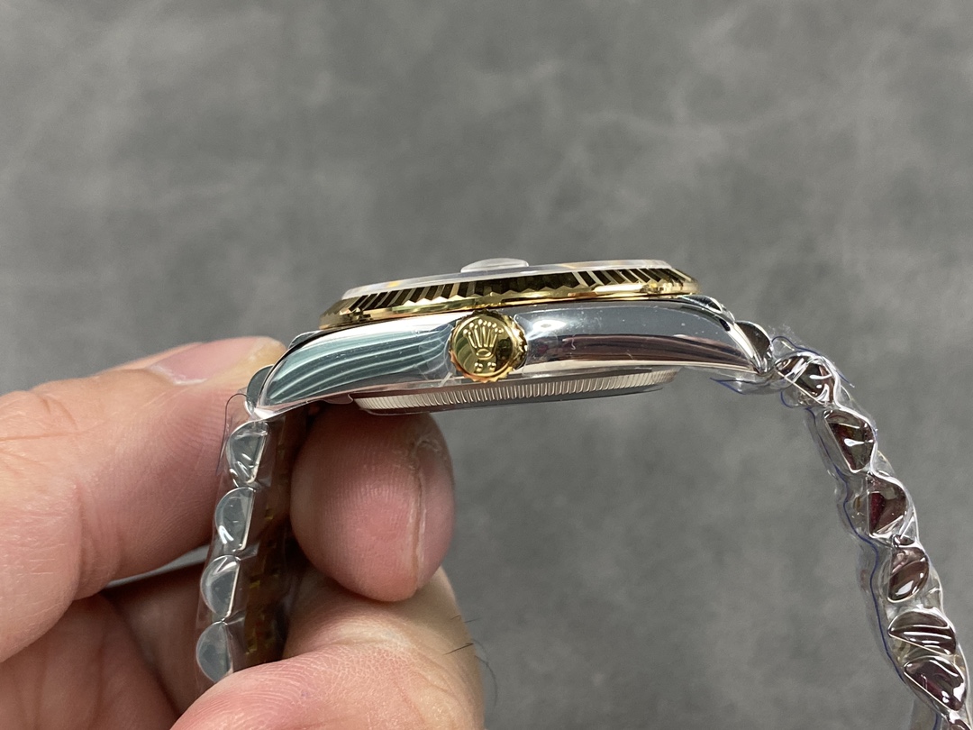 Rolex Datejust 126233 White Roman Dial Fluted Bezel 36MM Unisex Watch, 36mm yellow Rolesor case with Oystersteel monobloc middle case, screw-down steel back, screw-down yellow crown, yellow fluted bezel, White dial with roman numeral hour markers.Date displayed under cyclops lens in window at 3 o'clock with instantaneous date and rapid setting.Yellow Rolesor Jubilee bracelet with five-piece links, folding Oysterclasp buckle with Easylink comfort extension link.