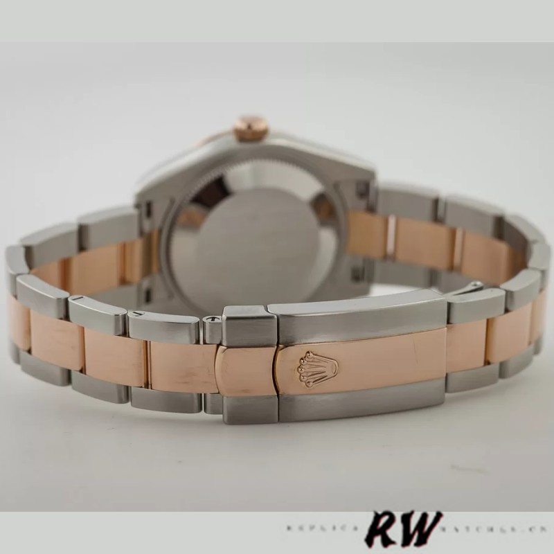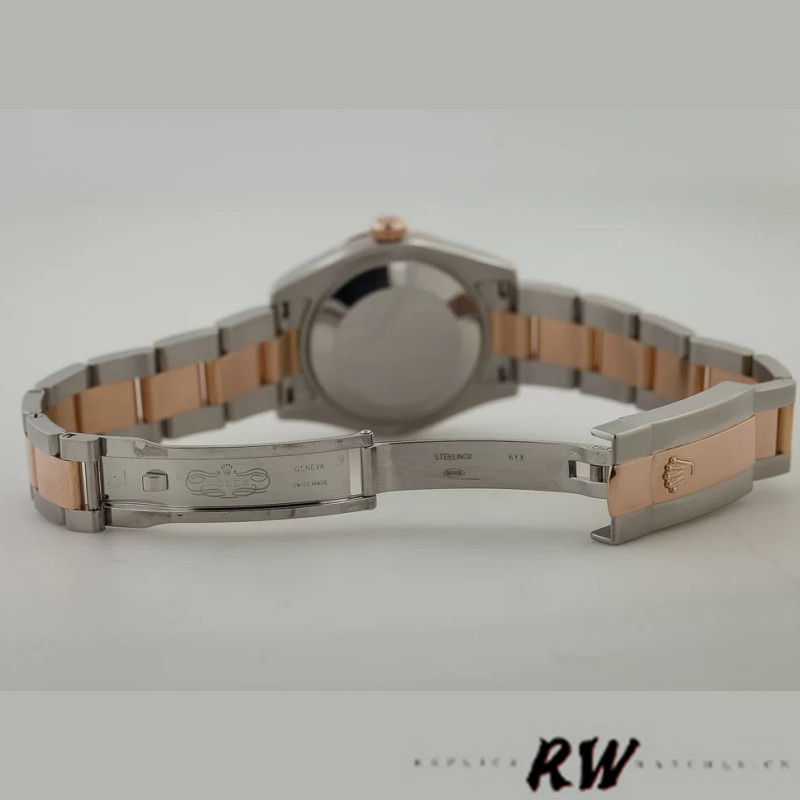 Rolex Datejust 178341 Black MOP Diamond Dial 31MM Lady Watch,31mm Everose Rolesor case comprised of Oystersteel and Everose gold, screw-down back, screw-down crown with twinlock double waterproofness system, Everose gold domed bezel set with 24 diamonds, scratch-resistant sapphire crystal with cyclops lens over the date, Mother of Pearl Black Dial Set with 10 Diamond Hour Markers, Date calendar at 3 o'clock aperture.Comes on 2-tone with a stainless steel and rose gold bracelet finished with a folding clasp.