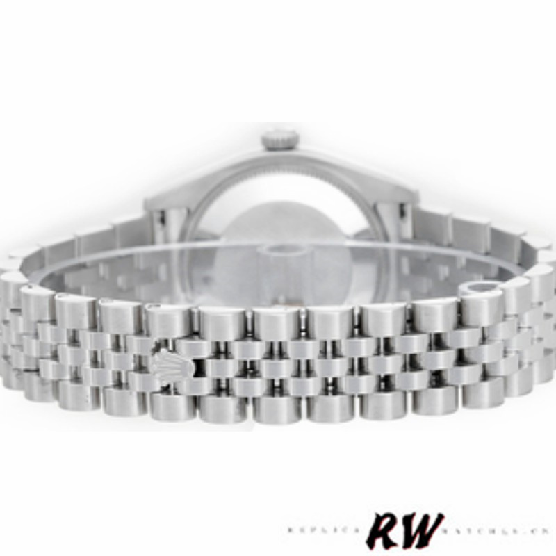 Rolex Datejust 178384 Stainless Steel Black Roman Dial 31MM Lady Watch,has a White Gold 31 mm Round Case with Screw Down Crown,White Gold bezel with set diamonds.Black Dial with Roman Dial Markers.Date calendar at 3 o'clock aperture. Stainless steel jubilee bracelet with fold over clasp.