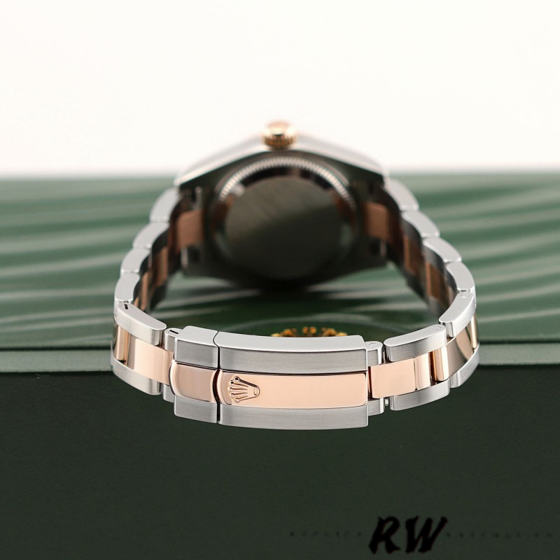 Rolex Datejust 179161 Stainless Steel and Everose Gold White Roman Dial 26MM Lady Watch,26MM Polished stainless steel case and rose gold smooth bezel. Rose gold Twinlock crown,White dial with polished rose gold hands. Applied rose gold Roman numeral hour markers. Date window with cyclops magnifying lens at 3 o'clock.Polished stainless steel and rose gold Oyster style bracelet with Folding Oysterclasp.