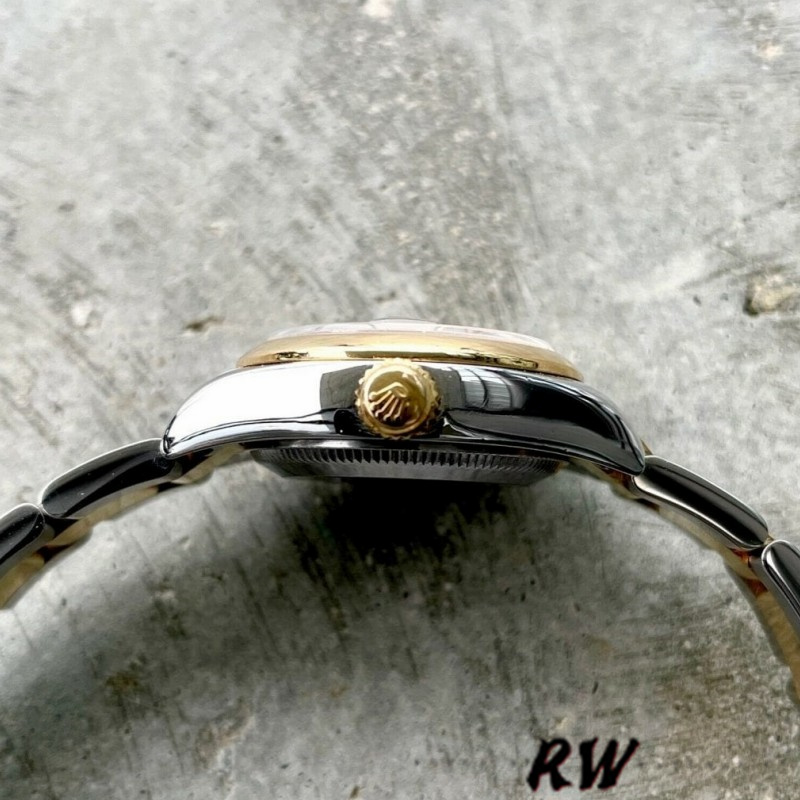 Rolex Datejust 179163 Blue Diamond Dial Domed Dezel 26MM Lady Watch,26MM Stainless steel yellow gold case, Domed bezel.Blue Dial with Diamond Hour Markers,Date display at the 3 o'clock position.Scratch resistant sapphire crystal. Screw down crown.The reliable Yellow Gold and Stainless Steel Oyster Bracelet will look great on your wrist.