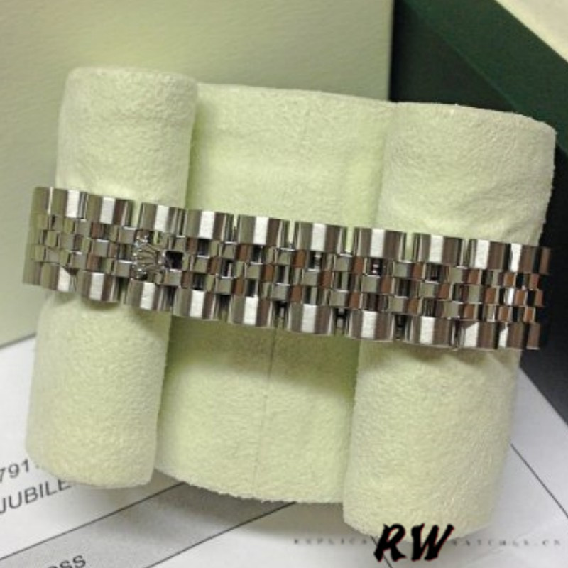 Rolex Datejust 179174 Black Index Dial Fluted Bezel 26MM Lady Watch, 26mm Stainless steel oyster case in diameter. White gold fluted bezel. Scratch resistant sapphire crystal with cyclops magnifier.Black Dial with Index Hour Markers. Date calendar at 3 o'clock aperture. Stainless steel jubilee bracelet with a hidden clasp.
