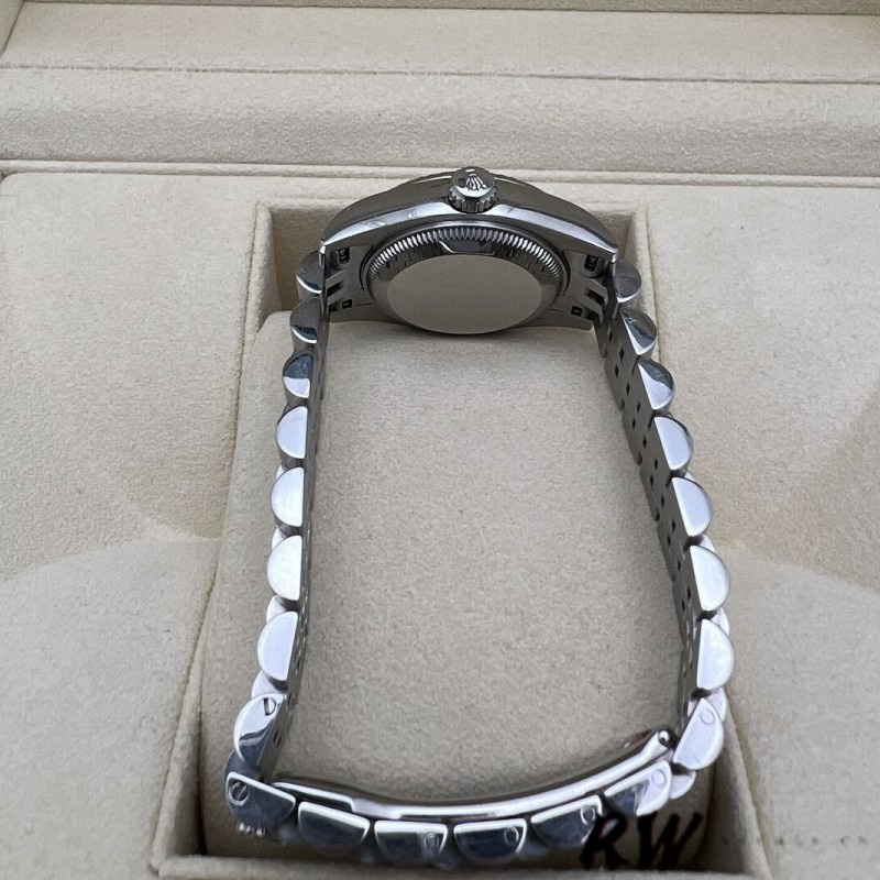 Rolex Datejust 179174 Silver Index Dial Fluted Bezel 26MM Lady Watch, 26mm Stainless steel oyster case in diameter. White gold fluted bezel. Scratch resistant sapphire crystal with cyclops magnifier.Silver Dial with Index Hour Markers. Date calendar at 3 o'clock aperture. Stainless steel jubilee bracelet with a hidden clasp.