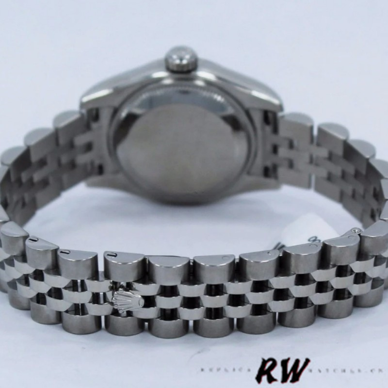 Rolex Datejust 179174 White Roman Dial Fluted Bezel 26MM Lady Watch, 26mm Stainless steel oyster case in diameter. White gold fluted bezel. Scratch resistant sapphire crystal with cyclops magnifier.White with Roman Numeral Markers. Date calendar at 3 o'clock aperture. Stainless steel jubilee bracelet with a hidden clasp.