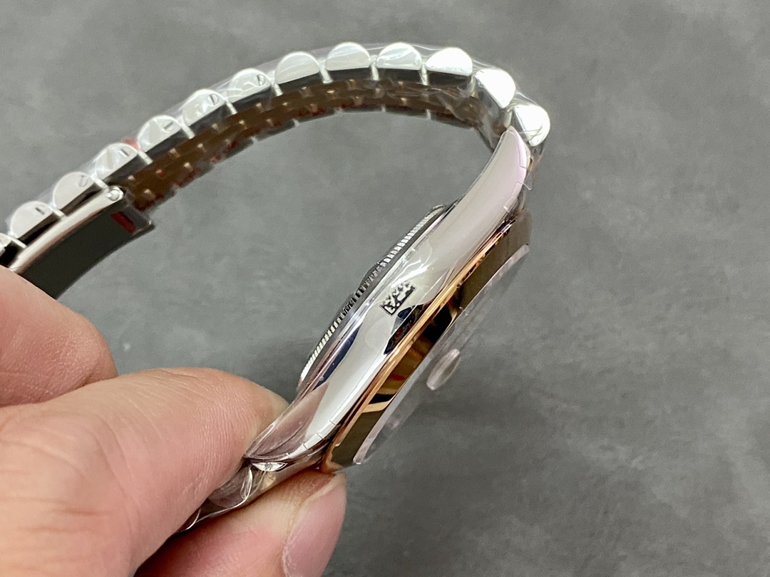 Rolex Datejust 126301 Rose Gold Sundust Index Dial 41MM Mens Watch,41mm Everose Rolesor case with steel monobloc middle case, screw-down steel back, Everose Gold screw-down crown, Everose Gold smooth bezel, scratch-resistant double anti-reflective sapphire crystal with cyclops lens over the date, Sundust dial with index hour markers. Date at 3 o'clock that changes instantaneously at midnight in a few thousandths of a second, Everose Rolesor Jubilee bracelet made from a combination of steel and Everose Gold with five-piece links, folding OysterClasp buckle with Easylink comfort extension link.