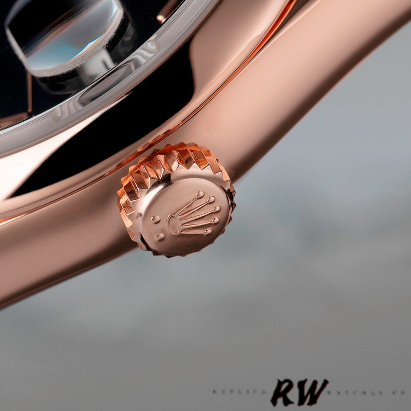 Rolex Day Date 118205 Black Dial 36mm Unisex Watch.36mmRound case shape.Fixed -domed everose gold bezel. Black dial with rose-gold tone hands and Index numeral hour markers. Minute markers around the outer rim. Date display at 3 o'clock; day display at 12 o'clock.. Automatic movement. Scratch resistant sapphire crystal. Screw down crown. Solid case back.Concealed Crown clasp.