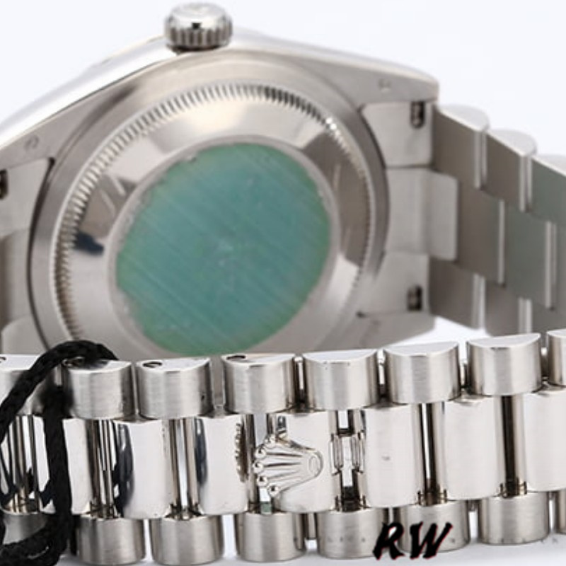 Rolex Day Date 118206 Meteorite Grey Dial 36mm Unisex Watch . 36mm white gold case and fluted bezel, Meteorite dial with silver tone hands and diamond hour markers. Minute markers around the outer rim. duo of diamond indexes at 6 and 9 o��clock, rolesor white gold bracelet with semi-circular links, day aperture at 12 o��clock position, date aperture at 3 o'clock position with a cyclops magnifying lens, white gold hands indicating the hour, minute and second. Screw-down white gold crown.