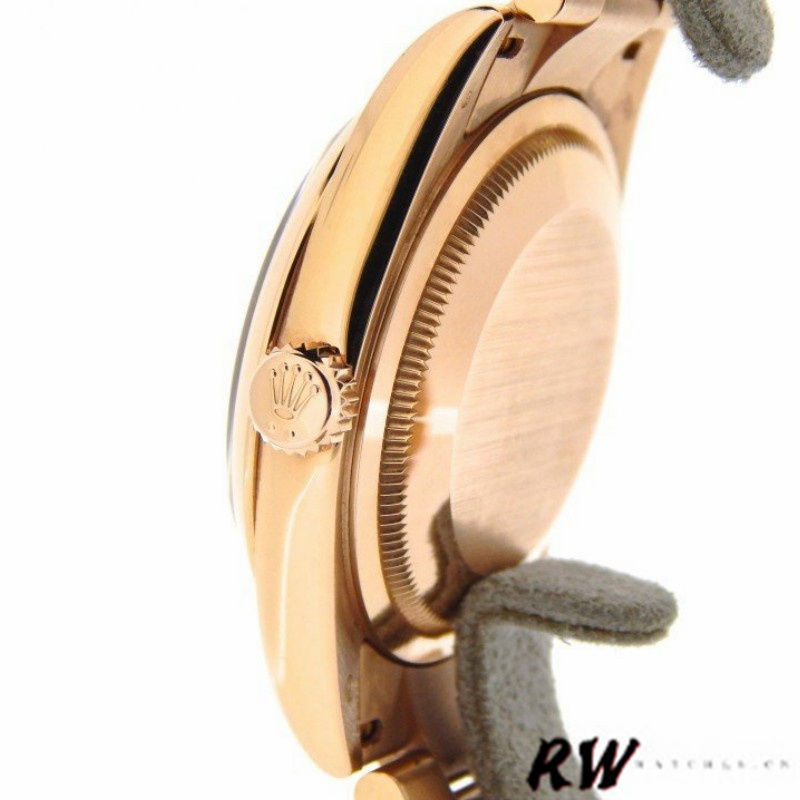 Rolex Day-Date 118205 White Roman Numeral Dial 36mm Unisex Watch has a Rose Gold 36 mm Round Case with Screw Down Crown and a Rose Gold Bezel. White Dial with Roman Dial Markers. Scratch Resistant Sapphire Crystal. Screw Down Crown and Caseback.The reliable Rose Gold President Bracelet will look great on your wrist.