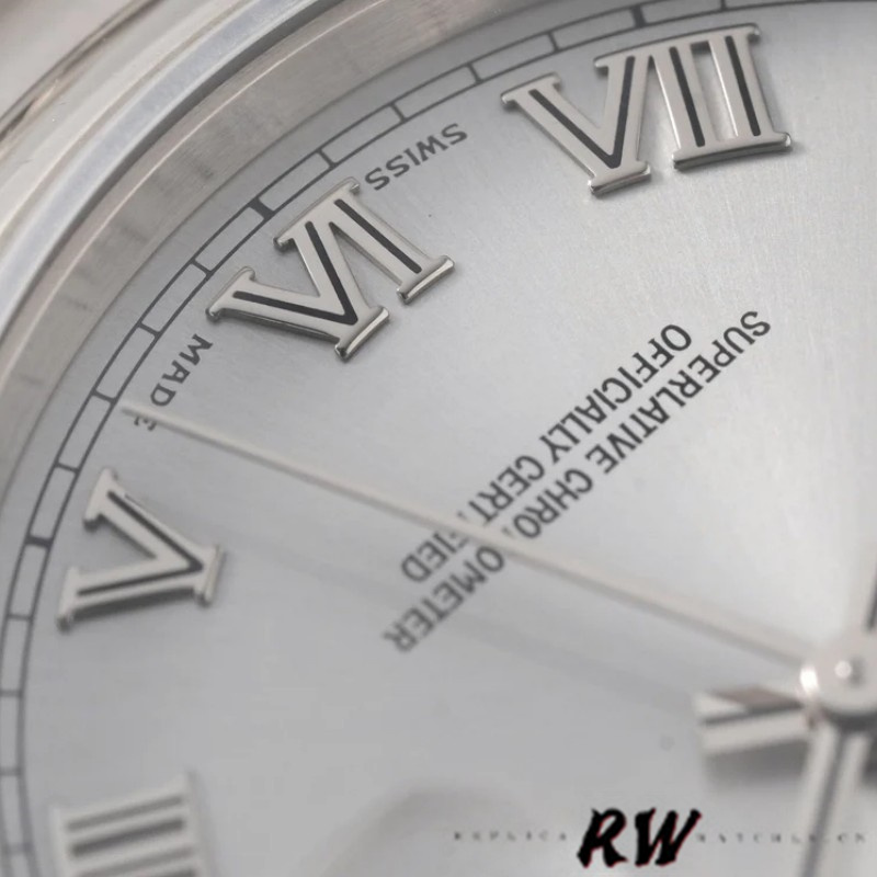 Rolex Day-Date 118209 Silver Roman Numerals Dial Automatic 36mm Unisex Watch.36mm white gold oyster case in diameter. White gold smooth bezel. Scratch resistant sapphire crystal with cyclops magnifier. Silver dial with raised roman numeral hour markers. Date calendar at 3 o'clock aperture. Day window at 12 o'clock aperture. White gold oyster bracelet with hidden clasp. Fits 7 3/4" wrist.
