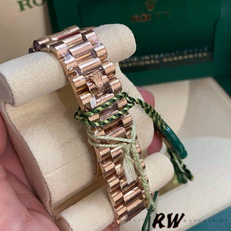 Rolex Day-Date 118235 Everose Gold Pink Jubilee dial 36mm Lady Watch.36mm rose gold oyster case in diameter.Fixed - fluted everose gold bezel. Pink Jubilee dial with rose-gold tone hands and diamonds an hour markers.Date display at 3 o'clock; day display at 12 o'clock.Scratch resistant sapphire crystal. Screw down crown. Solid case back. Rose gold oyster bracelet with hidden clasp.