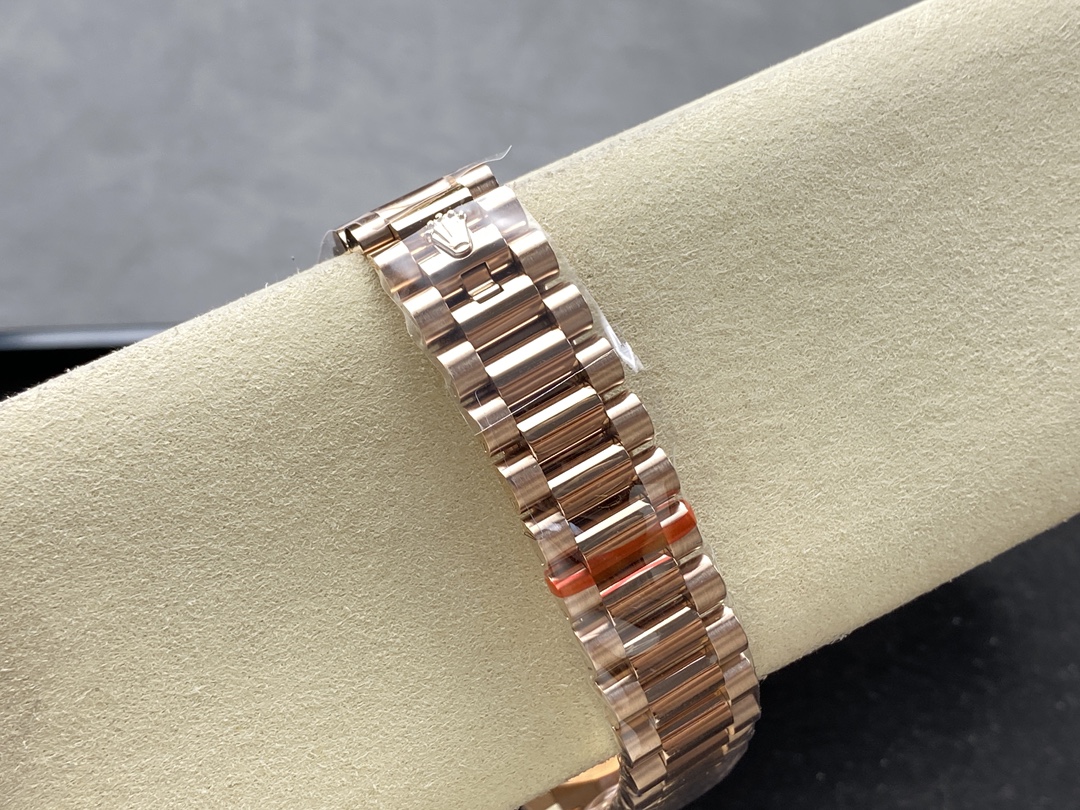 Rolex Day-Date 118235 Rose Gold Chocolate Brown Dial 36mm Unisex Watch has a Rose Gold 36 mm Round Case with Screw Down Crown and a Rose Gold Fluted Bezel. This beautiful time piece features a chocolate Dial.8 diamonds and 2 baguette-cut rubies dial with Index Dial Markers. The reliable Rolex Rose Gold President Bracelet will look great on your wrist.