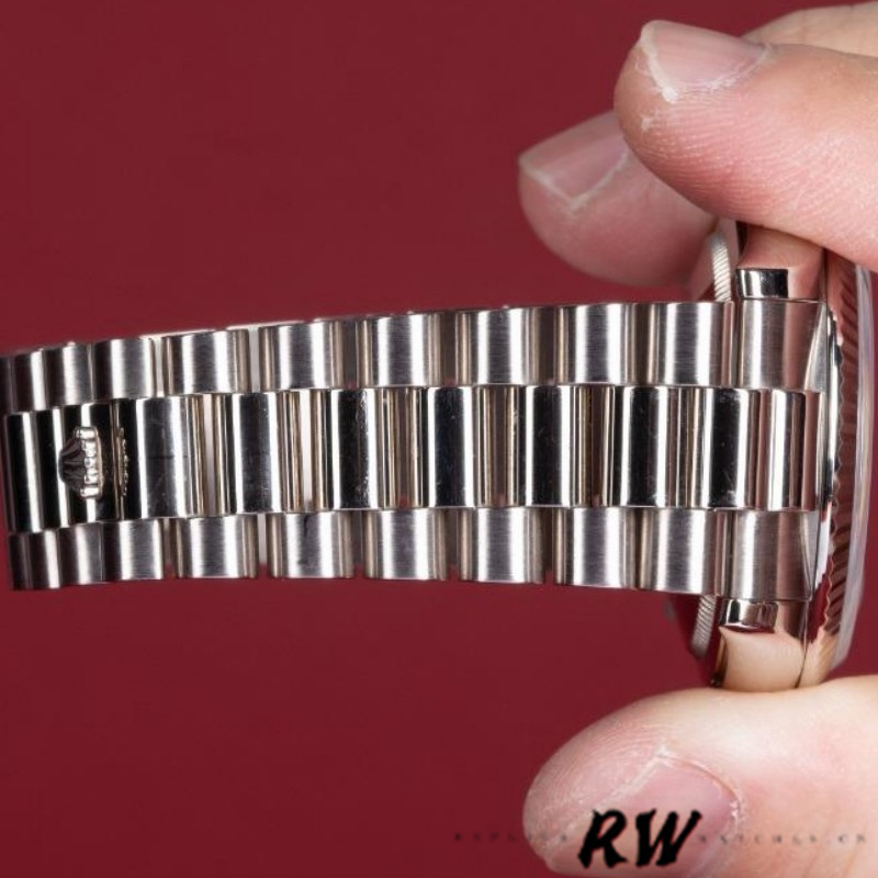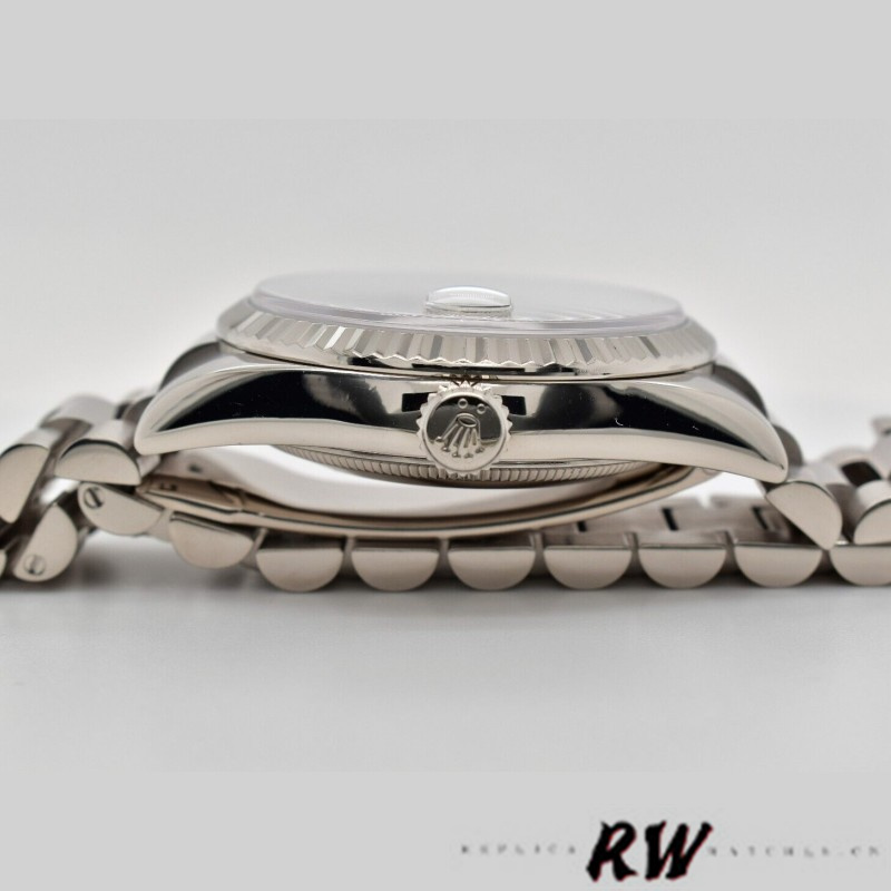 Rolex Day-Date 118239 Chocolate Brown Dial 36mm Unisex Watch. 36mm white gold case with white gold fluted bezel.Chocolate Brown Dial with Roman Numerals, Date display at 3 o'clock position and day display at 12 o'clock position with a cyclops magnifying lens. White gold Oyster bracelet, hidden deployant clasp. Sapphire crystal. White gold case back.