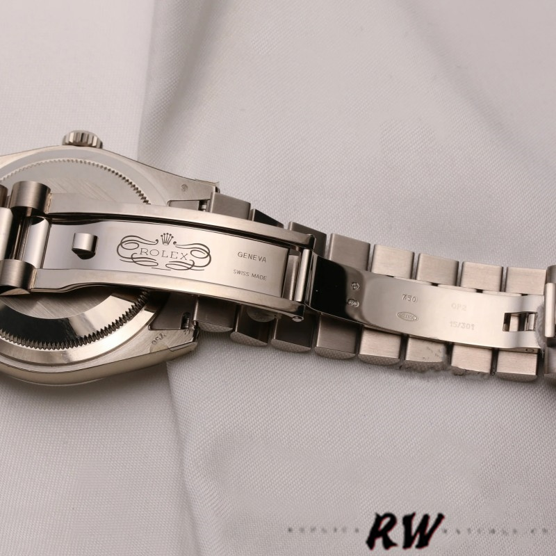 Rolex Day-Date 118239 Jubilee Chocolate Brown Dial 36mm Unisex Watch.36mm white gold case with white gold fluted bezel.Brown jubilee dial, 10 diamond hour markers, day display at 12 0'clock, date display at 3 o'clock with a cyclops magnifying lens. White gold Oyster bracelet, hidden deployant clasp. Sapphire crystal. White gold case back.