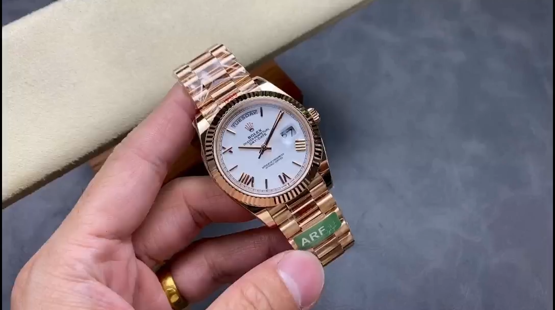 Rolex Day-Date 228235 Sundust Stripe Motif Dial Fluted Bezel 40mm Mens Watch