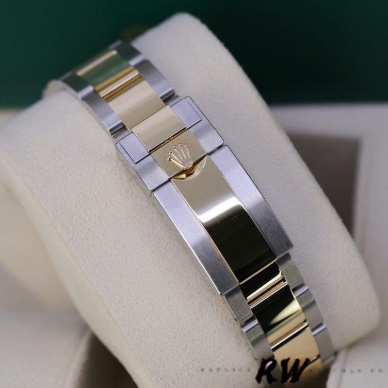 Rolex Cosmograph Daytona 116503 Black Mother Of Pearl Dial 40MM Mens Watch,40MM Yellow Gold And Stainless Steel case,Screw Down crown. Scratch Resistant Sapphire crystal.Black Mother of Pearl dial With diamond hour markers,30-minute counter at 3 o'clock, and 12-hour counter at 9 o'clock,Stainless steel and yellow gold oyster bracelet with flip-lock clasp.