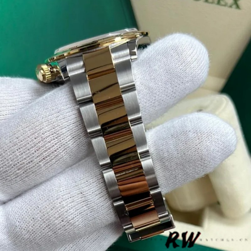 Rolex Cosmograph Daytona 116503 White Mother Of Pearl Dial 40MM Mens Watch,40MM Yellow Gold And Stainless Steel case,Screw Down crown. Scratch Resistant Sapphire crystal.White Mother of Pearl dial With diamond hour markers,30-minute counter at 3 o'clock, and 12-hour counter at 9 o'clock,Stainless steel and yellow gold oyster bracelet with flip-lock clasp.