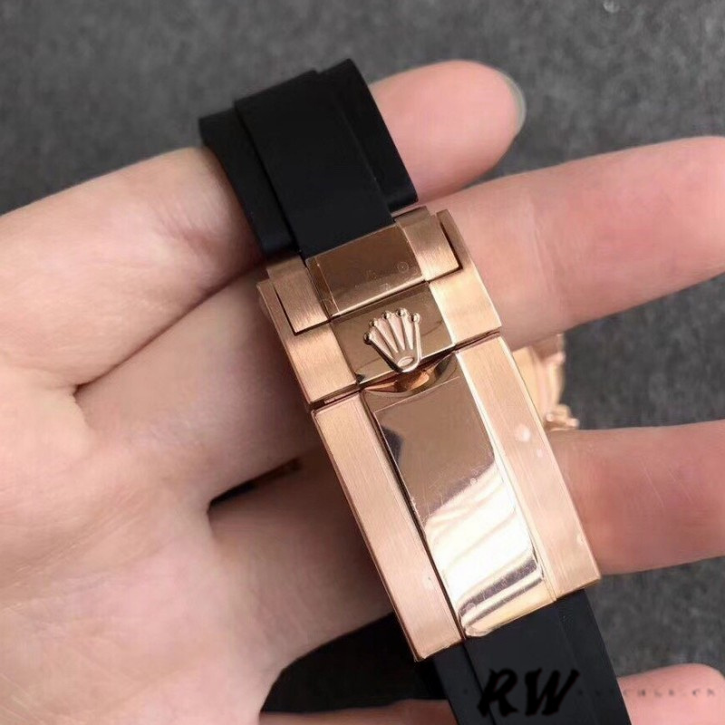 Rolex Cosmograph Daytona 116515 Chocolate Brown Dial 40mm Mens Watch.40mm Everose gold case with brushed and polished finished center lugs.features chocolate dial with Arabic numerals. Black ceramic bezel. Comes on black leather strap with rose gold deployant buckle. Black "Cerachrom" bezel, made of highly durable ceramic that is extremely hard, highly scratch-resistant, has excellent corrosion resistant properties is unaffected by ultraviolet rays so the color will not fade.