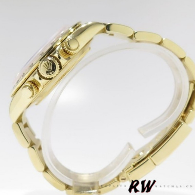Rolex Cosmograph Daytona 116528 Grey Index Dial 40MM Mens Watch,40mm yellow gold case in diameter. Yellow gold tachymeter engraved bezel. Scratch resistant sapphire crystal. Grey Dial with Index Hour Markers.Outer 1/5th seconds track. Three Gold outlined subsidiary dials for the seconds, the 12-hour and 30-minute registers. Luminous yellow gold baton hands.Yellow gold oyster bracelet with flip-lock clasp.