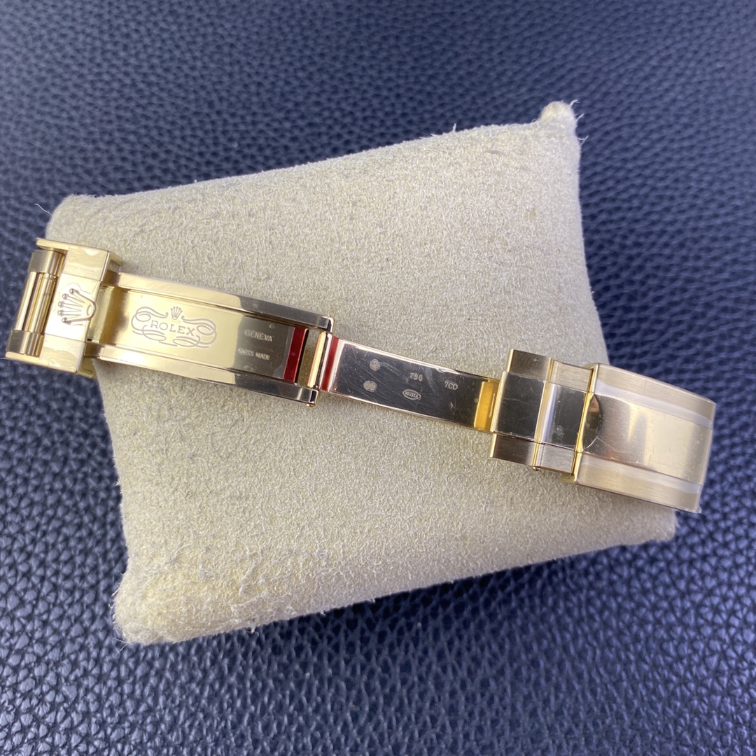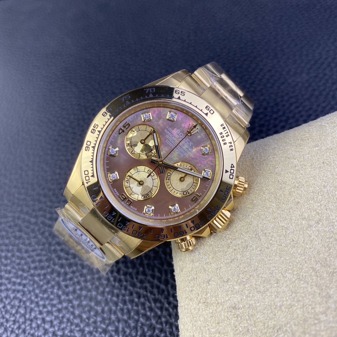 Rolex Daytona 116508 Yellow Gold Black Mother Of Pearl Dial 40MM Mens Watch,Yellow Gold case 40 mm in diameter.Triplock winding crown protected by the crown guards. Yellow Gold tachymeter engraved bezel. Scratch resistant sapphire crystal.Black Mother of Pearl Dial With Diamond Hour Markers .30-minute counter at 3 o’clock – small seconds hand at 6 o’clock with the "Daytona" inscription in red, and a 12-hour counter at 9 o’clock. Yellow Gold oyster bracelet with flip-lock clasp.