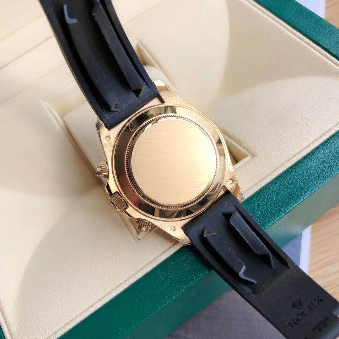 Rolex Daytona 116518LN Diamond Champagne Dial 40mm Mens Watch.40mm yellow gold case, screw-down yellow gold back, screw-down crown and push buttons with Triplock triple waterproofness, black monobloc Cerachrom bezel with engraved tachymetric scale, scratch-resistant double anti-reflective sapphire crystal, champagne dial, 8 diamond hour markers,chronograph central second hand, 30-minute counter at 3 o'clock, and 12-hour counter at 9 o'clock,Black Rubber strap.Oysterlock folding safety buckle.