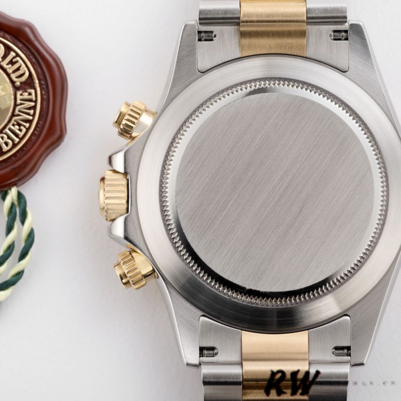 Rolex Daytona 116523 White Diamond Dial 40mm Mens Watch has a Stainless Steel 40 mm Round Case with Screw Down Crown and a Yellow Gold Bezel. The White Diamond dial on this classic gold and steel Cosmograph is one of the nicest we've seen!Gold outlined subsidiary dials for the seconds, the 12-hour and 30-minute registers. Luminous yellow gold and black baton hands. Stainless steel and yellow gold oyster bracelet with flip-lock clasp.