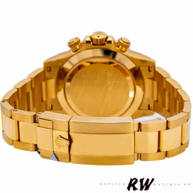 Rolex Daytona 116528 Black Dial Yellow Gold 40mm Mens Watch has a Yellow Gold 40 mm Round Case with Screw Down Crown and a Yellow Gold Domed. and features a polished case and bezel.Black Dial with 3 Functional Sub Dials ,Seconds hand Sub dial at 6 O'Clock.The elegantly designed Yellow Gold with Folding Oysterlock Safety will look great on your wrist.