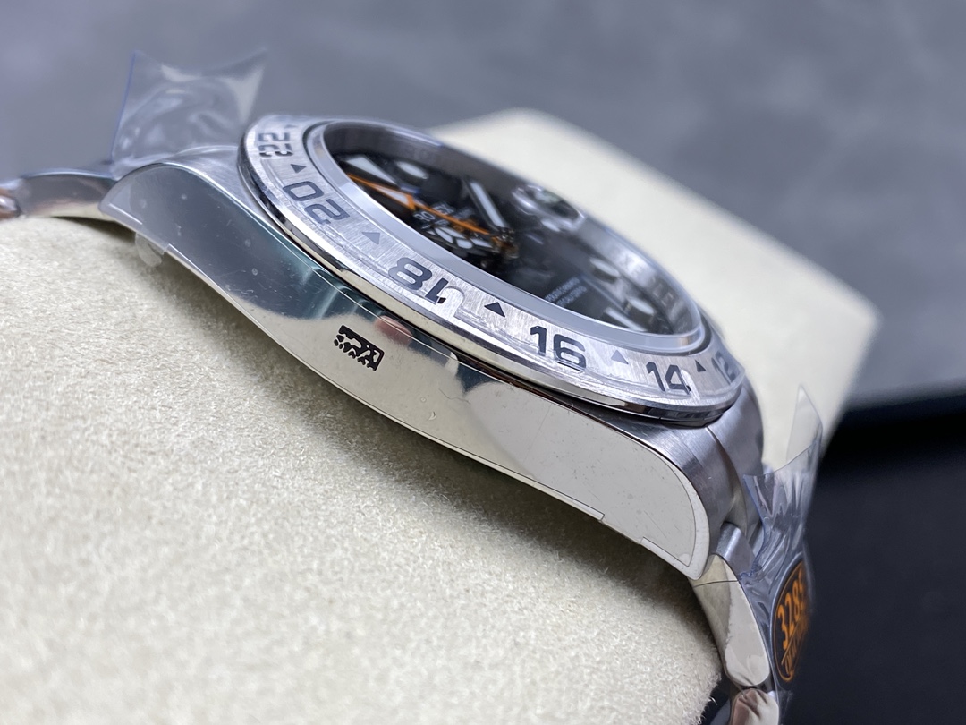 Rolex Explorer II 216570 Stainless Steel Black Dial 42MM Mens Watch,42MM Stainless steel case in diameter. Stainless steel tachymetric scale bezel. Scratch resistant sapphire crystal with cyclops magnifying glass. Black dial with luminous black hands and index hour markers. Minute markers around the outer rim. Luminescent hands and markers. Date window at 3 o'clock aperture. Stainless steel oyster bracelet with flip lock clasp. Fits 8" wrist.