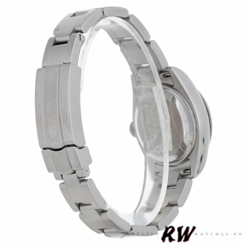 Rolex Oyster Perpetual 176234 Fluted Bezel Blue Dial 26MM Lady Watch,26MM Stainless steel oyster case in diameter.White gold fluted bezel. Scratch resistant sapphire crystal. Blue dial with Arabic numerals and white luminous baton hour markers.Stainless steel oyster bracelet with a deployant buckle.