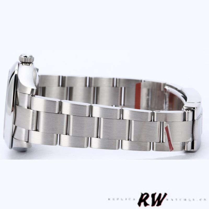 Rolex Oyster Perpetual 177200 Blue Dial Domed Bezel 31mm Lady Watch, 31mm Stainless steel oyster case in diameter. Stainless steel smooth domed bezel. Scratch resistant sapphire crystal. Blue Dial with with Arabic numerals hour markers.Stainless steel oyster bracelet with a fold over clasp.